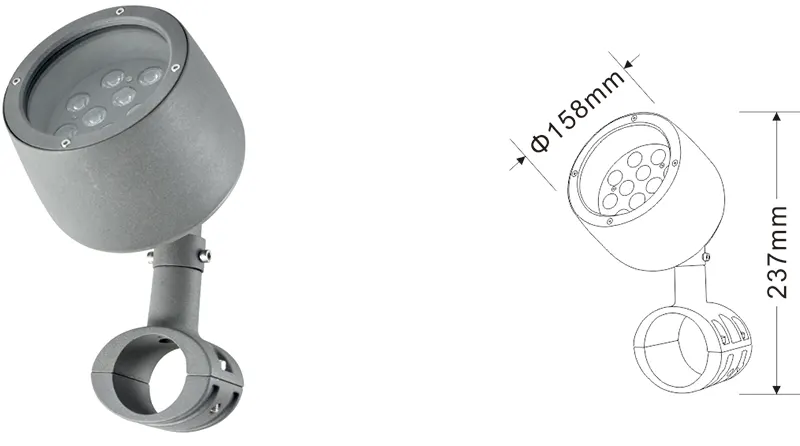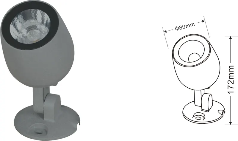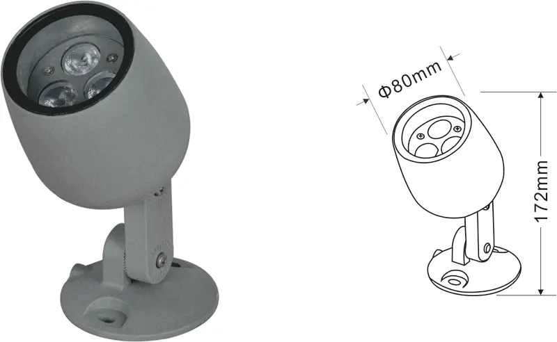 | Жарықдиодты коб | Con-tgd08-1 | Ø80 * 172 мм | 3 * 3w | Материал: алюминий + температуралы әйнек Кронштейн түрі: реттелетін IP: IP67 Түс температурасының нұсқалары: 3000к / 4000к / 6500K RGB / DMX512 (COB қоспағанда) RGBW / DMX512 (COB қоспағанда) Дәстүрлі сұр, құрылыс қасбеттерінің түсіне сәйкес келетін реттеледі |