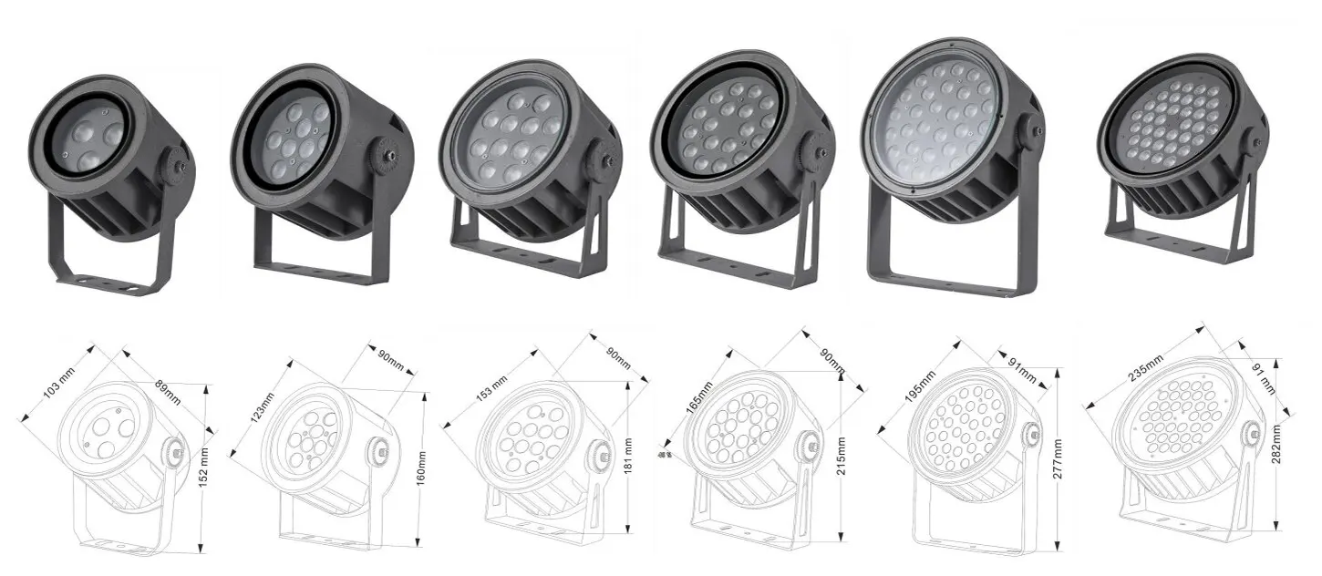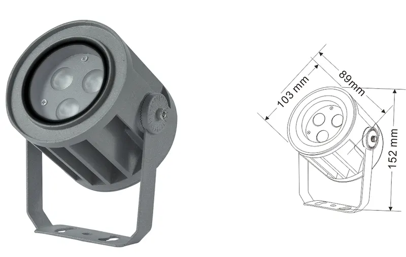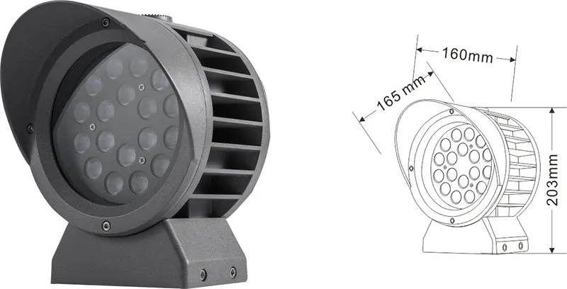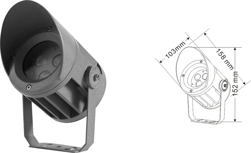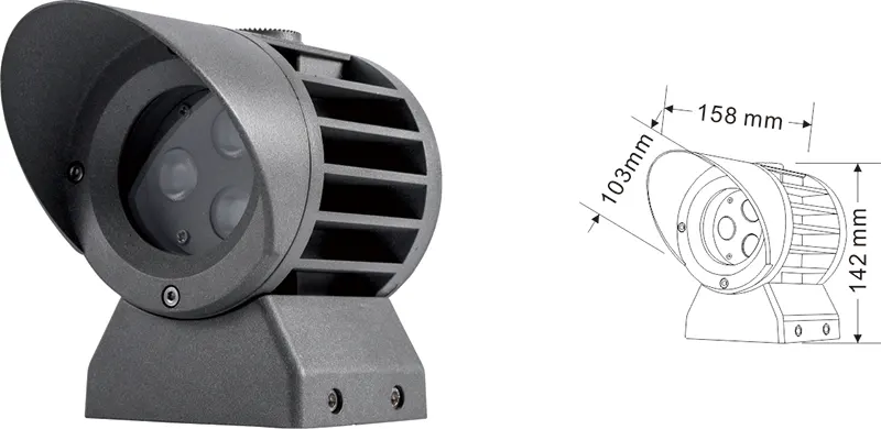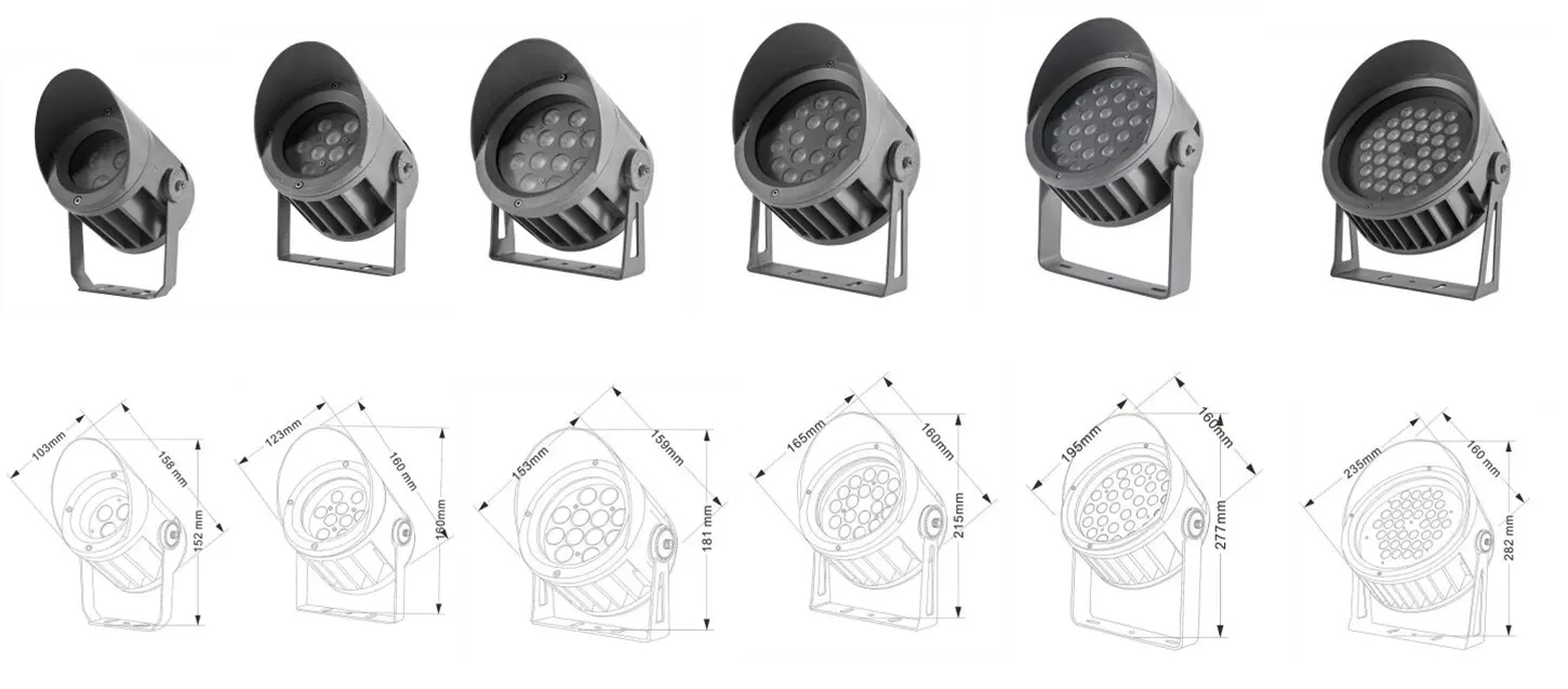 | ЖШД Fachde Projection Light | Con-tgd02-1 | Φ103 * 89 * H152MM | 3-10w | Материал: алюминий + температуралы әйнек Кронштейн түрі: реттелетін IP: IP67 Түс температурасы Міндетті емес: 3000к / 4000к / 6500K RGB / DMX512 RGBW / DMX512 Кәдімгі сұр, сазды сұр түске ие болу |