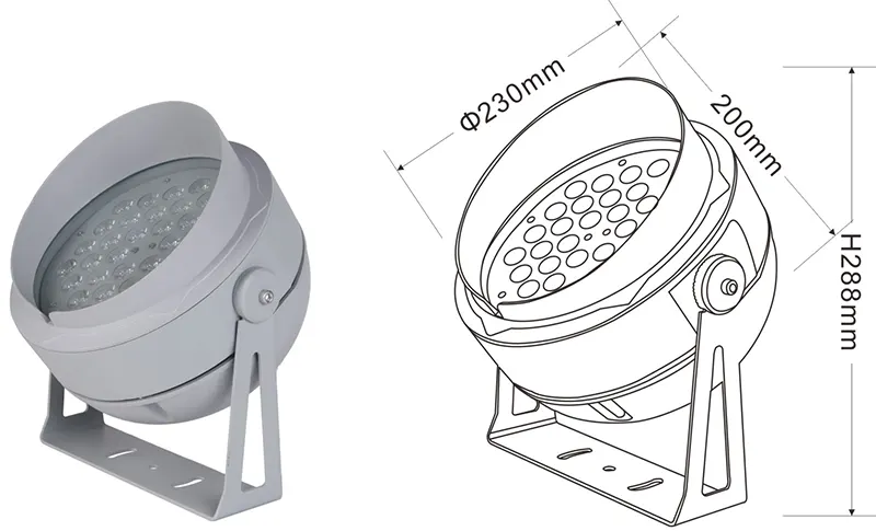 | Con-tgd09-7 | Φ355 * 198 * H310mm | 36 * 5w |