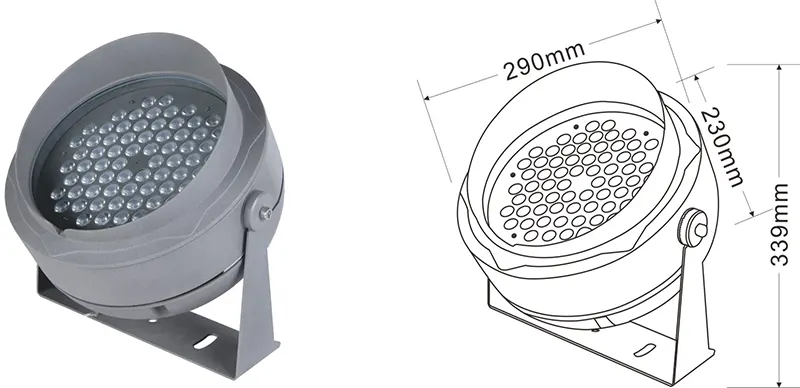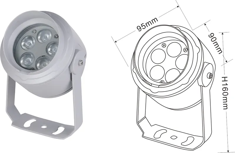 | Жарықдиодты жарық | Con-tgd09-1 | Φ95 * 90 * H150mm | 5 * 2w | Материал: алюминий + температуралы әйнек Кронштейн түрі: реттелетін IP: IP67 Түс температурасы Міндетті емес: 3000к / 4000к / 6500K RGB / DMX512 RGBW / DMX512 Кәдімгі сұр, сазды сұр түске ие болу |