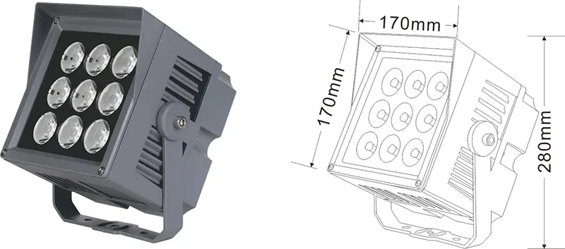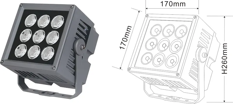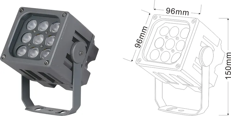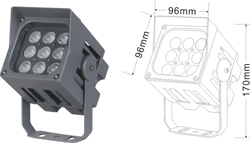| LED ландшафт проекторы | Con-tgd06-1 | 96 * 96 * 150 мм | 9 * 2w | Материал: алюминий + температуралы әйнек Кронштейн түрі: реттелетін IP: IP67 Түс температурасы Міндетті емес: 3000к / 4000к / 6500K RGB / DMX512 RGBW / DMX512 Сұр, ғимаратқа сәйкестендіруге болады қасбеттік түс |